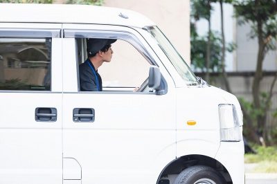 担当エリアにて、軽バンを使用した配送業務 -