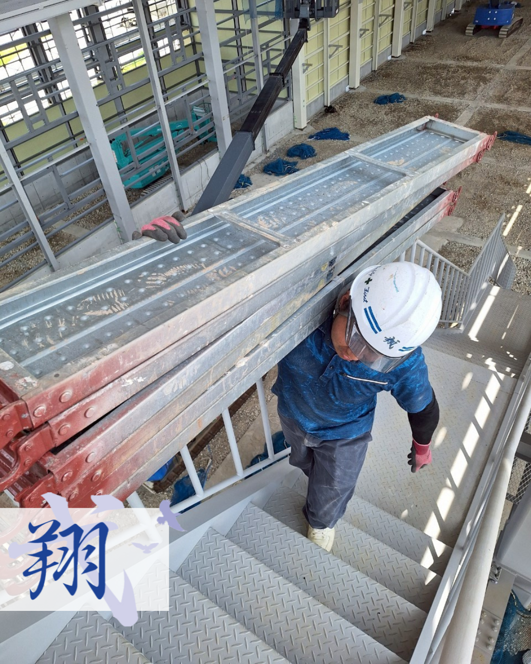 こんにちは!株式会社鳶翔です👷🏾♂️✨今日は職人さんが実際に働く姿を紹介します🎶🏗️ 今日の現場スナップ:鳶職人の力と工夫!職人さんが肩に担いでいるのは足場板と呼ばれる部材で1枚あたりおよそ15〜20kgほどの鉄製の板です😳現場ではコレを何枚も運びながら組み立てていきます!写真では軽々と運んでいるように見えますが…実際にはかなりの重量💦バランスを保ちながら安全に運ぶのが職人の技です✨重いものを運ぶと聞くと”力任せ”のイメージがあるかもしれません…実際には身体の使い方とバランスの取り方が重要です😳一瞬の判断ミスで身体を痛めてしまうこともあるので長年の経験から身についた職人さんのコツが生きています✨重い部材を担ぐ姿は鳶職の象徴とも言えますよね!1枚1枚の足場板に現場への責任と誇りが込められています✨無理をしない・声を掛け合う・正しい持ち方を守るこの3つを徹底することで現場の効率も上がります🎶今日もよろしくお願いします🔥