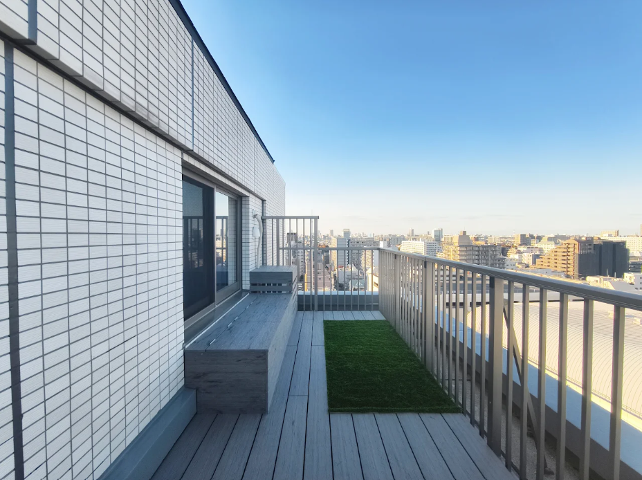 【施工事例ご紹介】マンションのルーフバルコニーを有効活用!収納と癒しを兼ね備えたモダンな空間へ(江戸川区 マンション ルーフバルコニー 樹脂木デッキ)