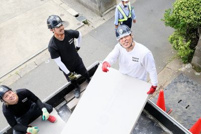 仕事内容は工事に使う資材の搬入や現場の後片付け作業です。