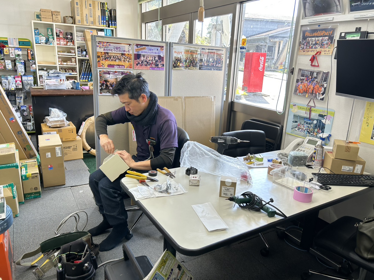 私たちは「島の電気屋さん」として、家電の修理や配線工事、点検など、