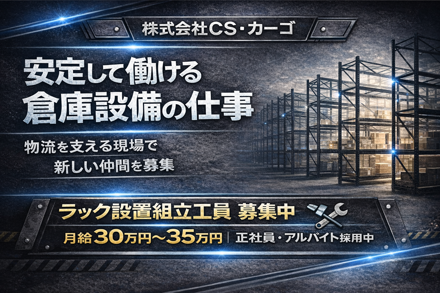 ラック設置組立工員募集中! -