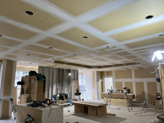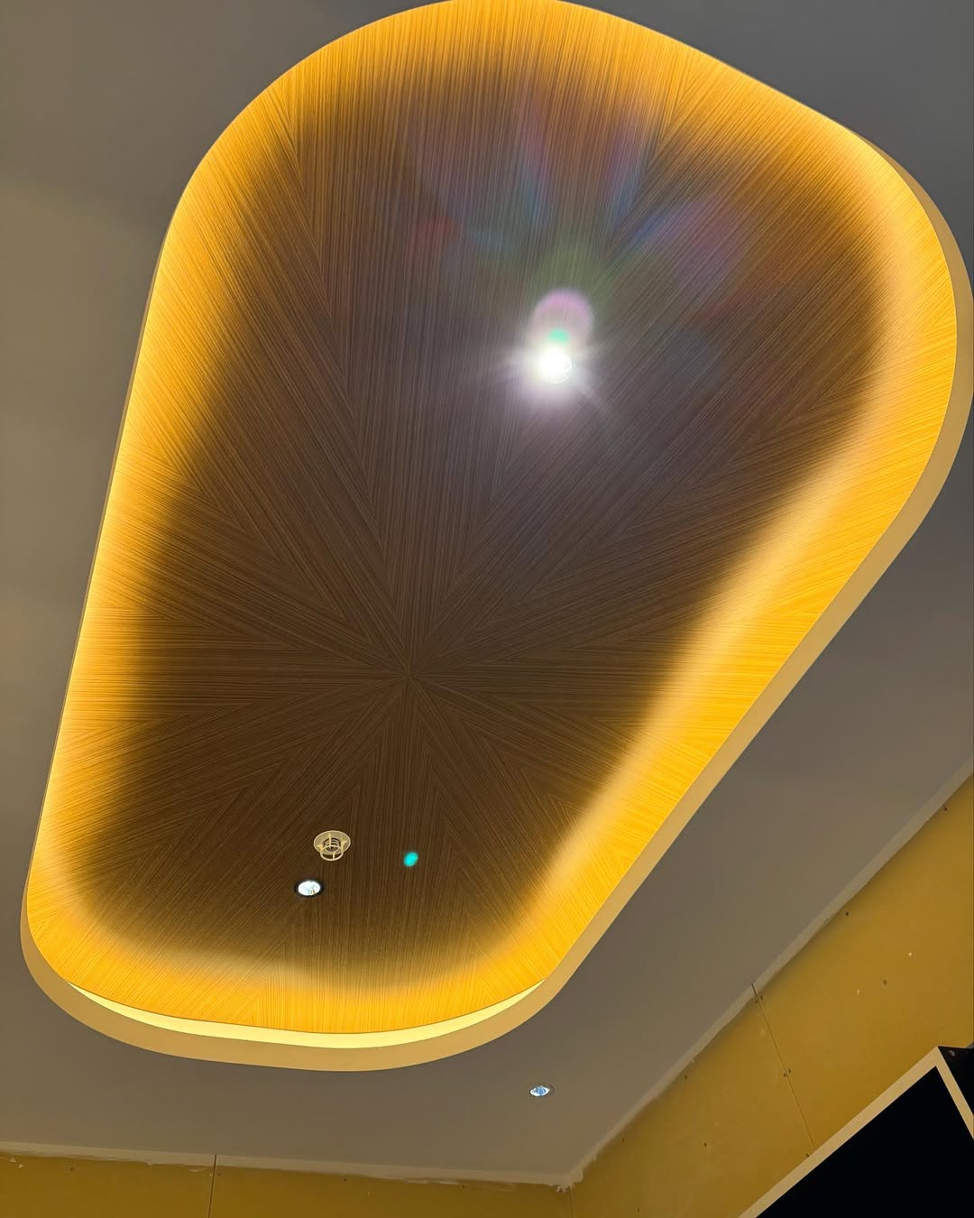 【内装施工事例】放射状クロスで魅せる天井デザイン|店舗・住宅のアクセントに最適!