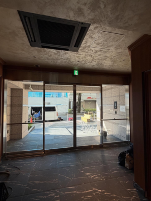 【内装施工事例】五反田オフィスビルのエントランス自動ドアにリアテックシート施工