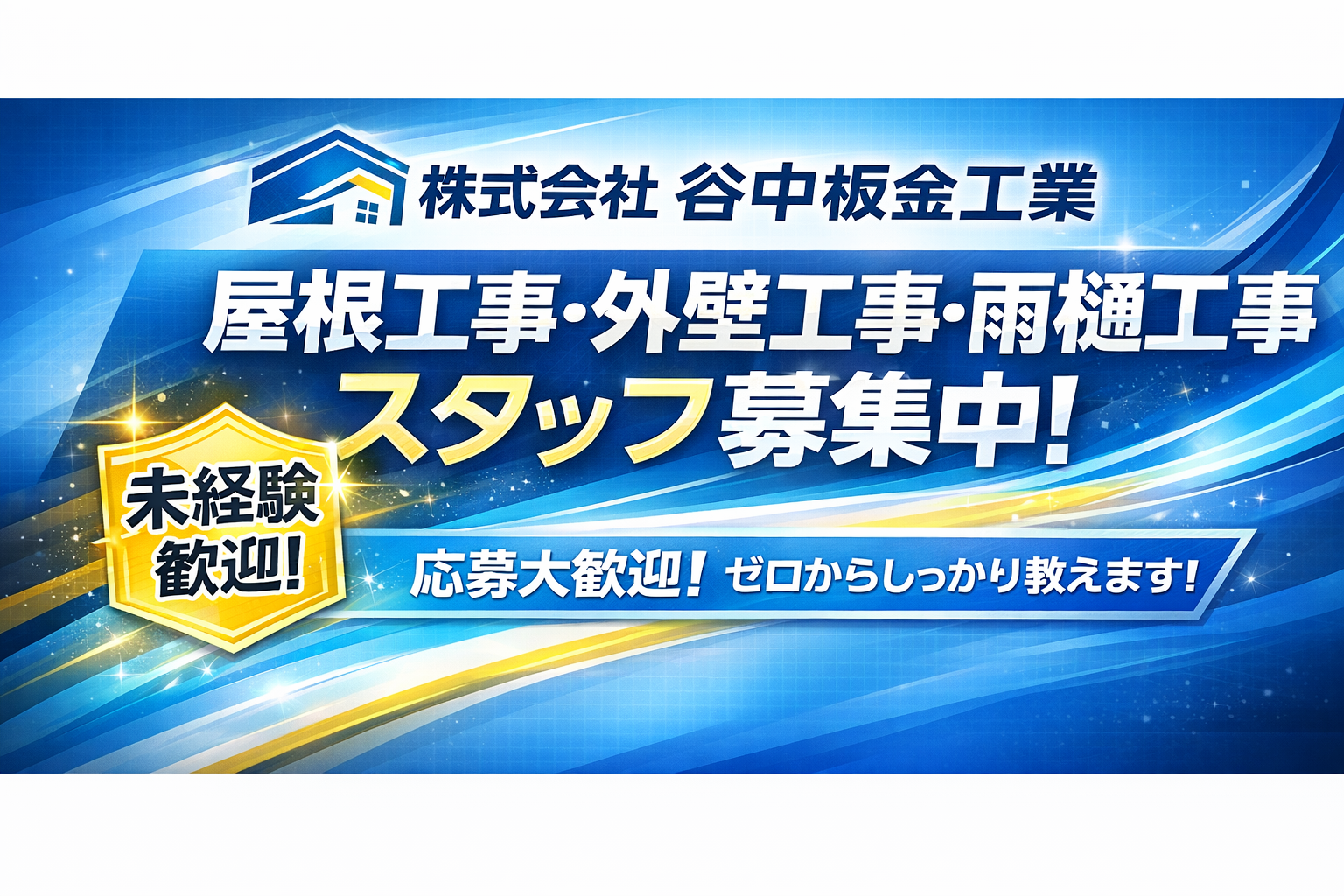 株式会社谷中板金工業では現在、屋根工事・外壁工事・雨樋工事のスタッフを募集中です!