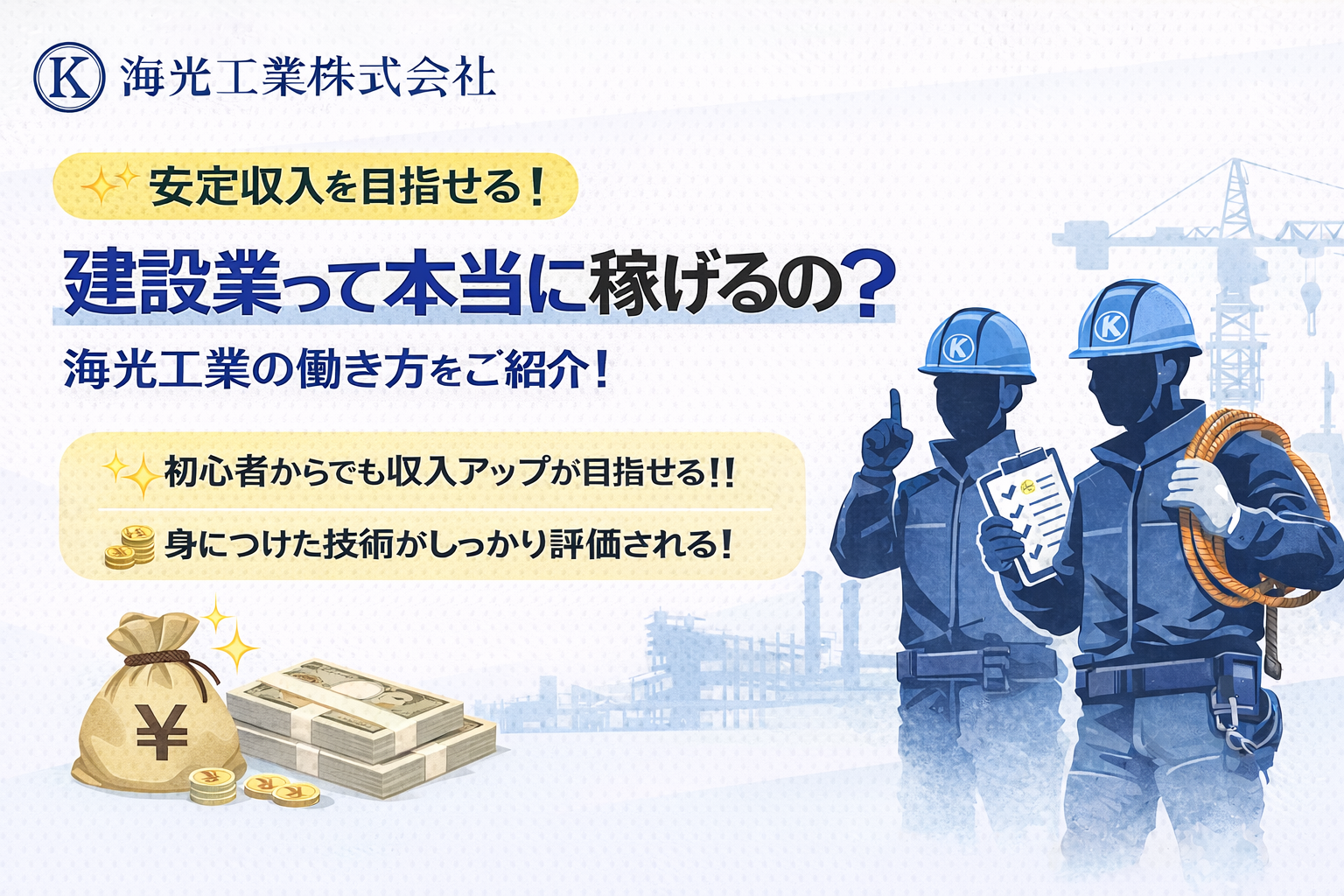 【安定収入を目指せる】建設業って本当に稼げる?海光工業の働き方をご紹介!