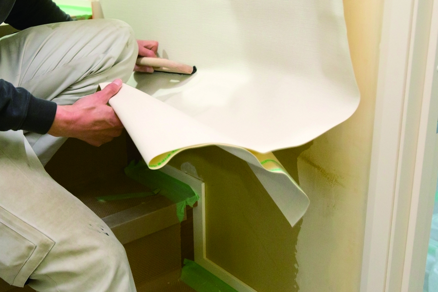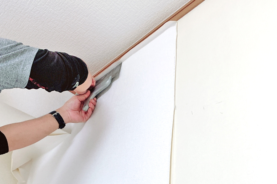 ボードを張った壁や天井に、ビニールクロス・織物クロス・紙クロスなどをシワなく真っすぐに貼っていく作業です。建物の仕上げ工程で、空間が一気に完成形へと変わります。