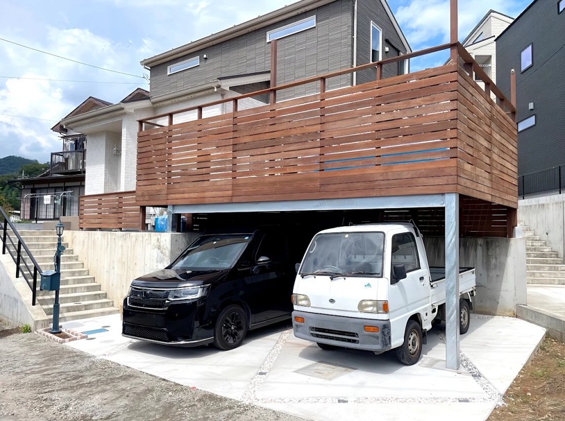 【施工事例ご紹介】敷地を最大限に活用する、2台分の車庫上デッキ(厚木市 車庫上 ハイデッキ)