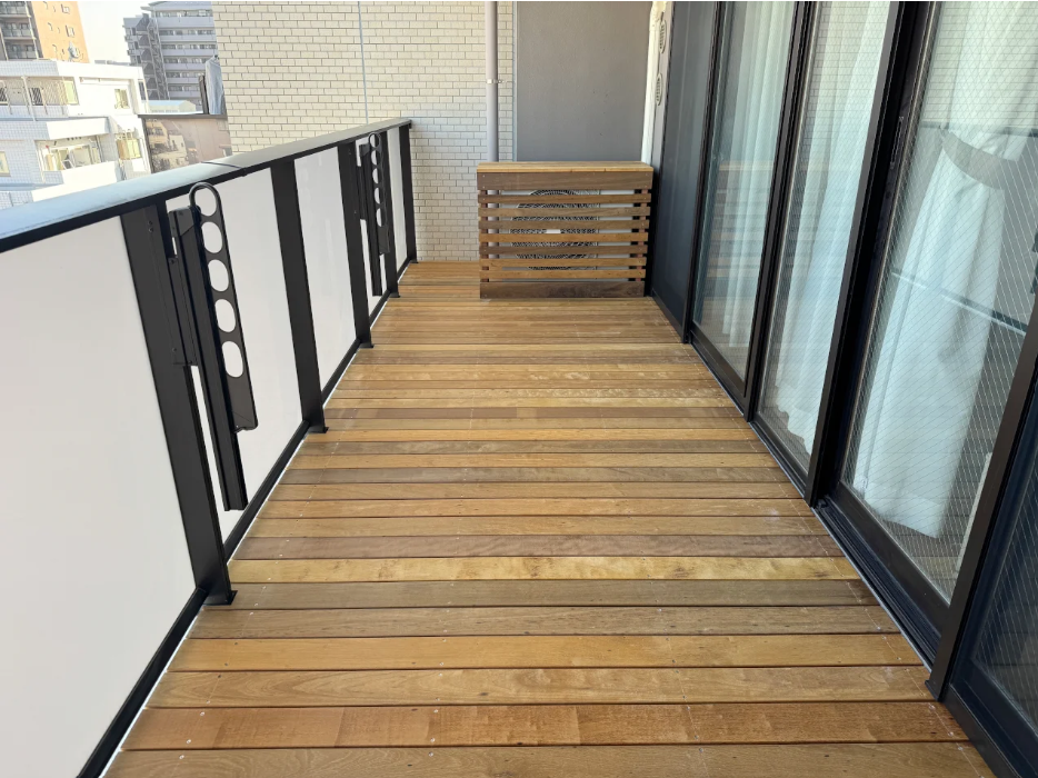 【施工事例ご紹介】愛犬とすごす、もうひとつの部屋。ウッドデッキがかなえた、上質なベランダ空間(江東区 マンションベランダ ウッドデッキ)