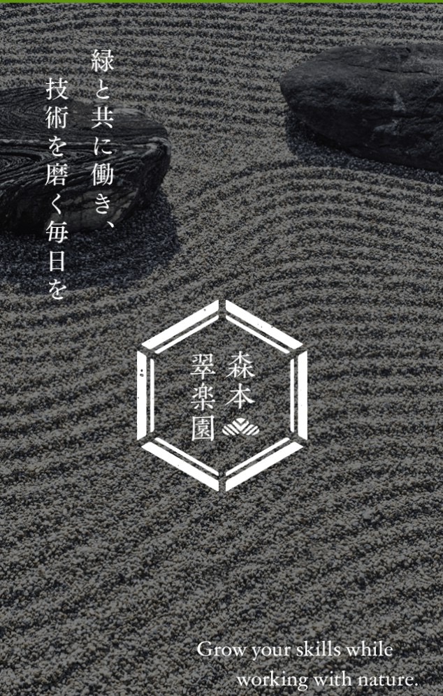 この度は森本翠楽園に興味を持っていただき誠にありがとうございます。私たちの仕事は、暮らしに潤いと安らぎを与える大切な役割を担っています。自然と人との調和を大切にしながら、街や庭を彩る仕事は、多くの人の笑顔につながります。未経験から始めた仲間も今では第一線で活躍しており、一歩踏み出す意欲をしっかりと応援できる環境があります。技術を磨きたい方も、安定した職を求める方も、自分らしく働ける場所で未来を築くことができます。共に新しい景観を生み出す仲間を歓迎しています。【社長の思い】