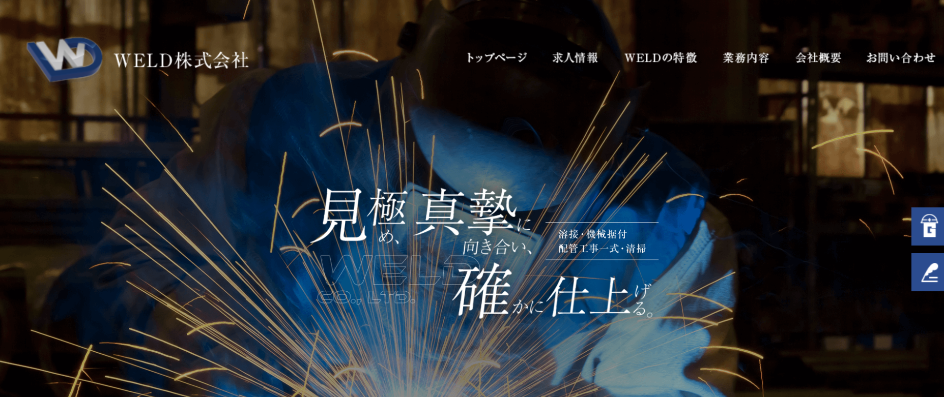 この度は、WELD株式会社のGATEN職ページをご覧いただき、誠にありがとうございます。代表取締役の芹澤能光(せりざわ よしてる)です。弊社は、愛知県名古屋市港区エリアにて、溶接業、機械据付工事、機械メンテナンス工事、清掃作業など、幅広い業務を手がけております。幅広い事業に取り組んでいるのは、「できる限り柔軟にお客様のご要望にお応えしたい」という思いからです。お客様との信頼関係を第一に考え、社員一丸となって日々の業務に励んでおります。