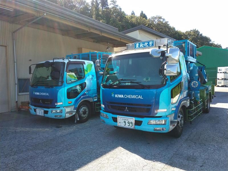 作業には、県内で当社だけが保有している専用吸引車をはじめ、クレーンやフォークリフトなどを使用し作業を行います。