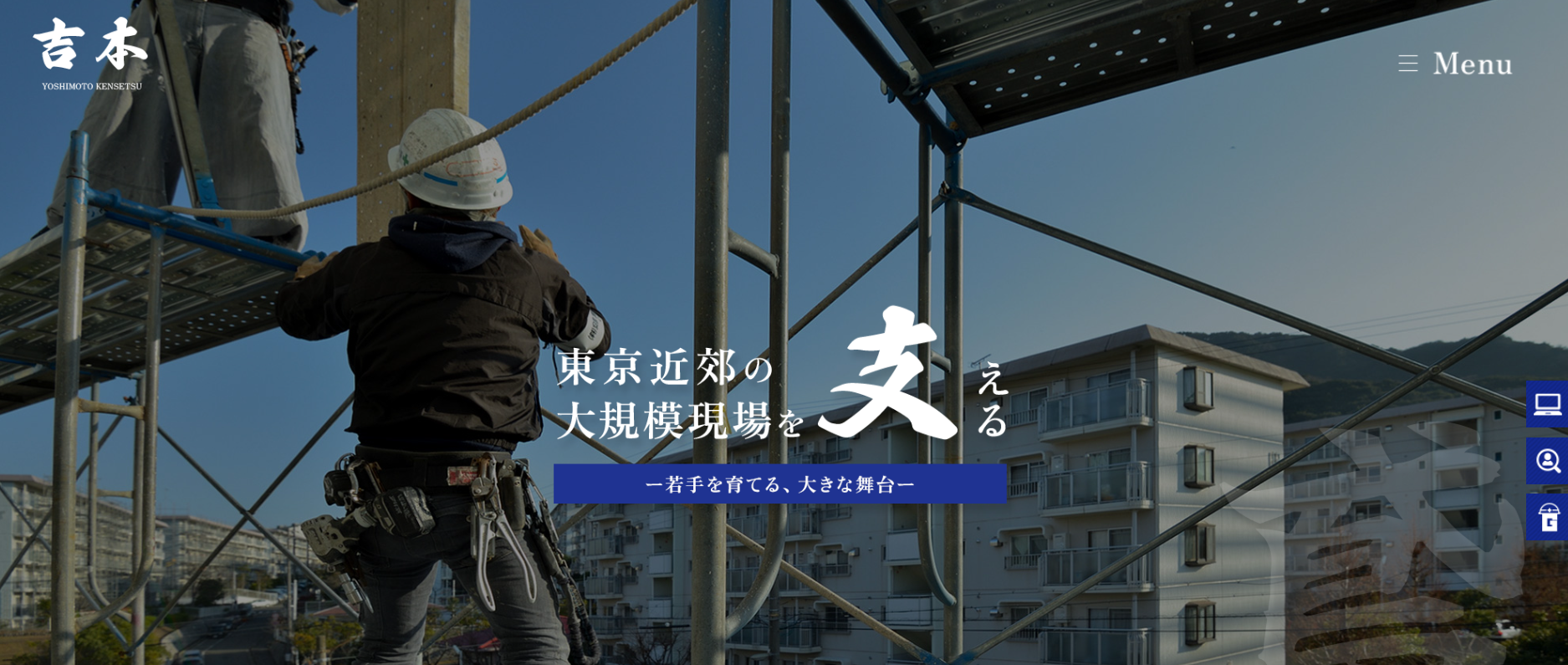 株式会社吉本建設工業のガテン職ページをご覧いただき、ありがとうございます。私は19歳でとび職の世界に入り、この仕事一筋で30年以上続けてきました。若い頃に「一生この仕事でやっていく」と決めて会社を立ち上げ、ここまで歩んでくることができました。これまで支えてくださったお客様、取引会社の皆様には、心より感謝申し上げます。