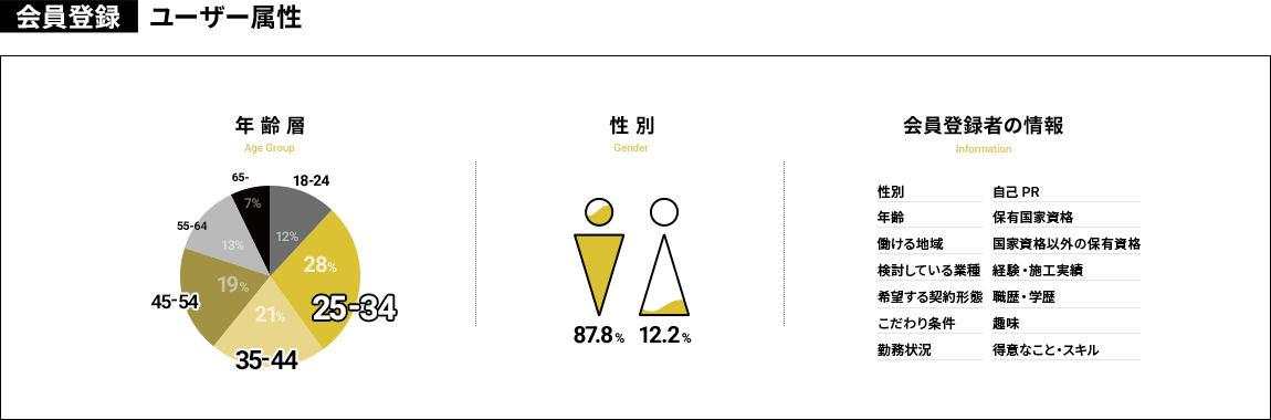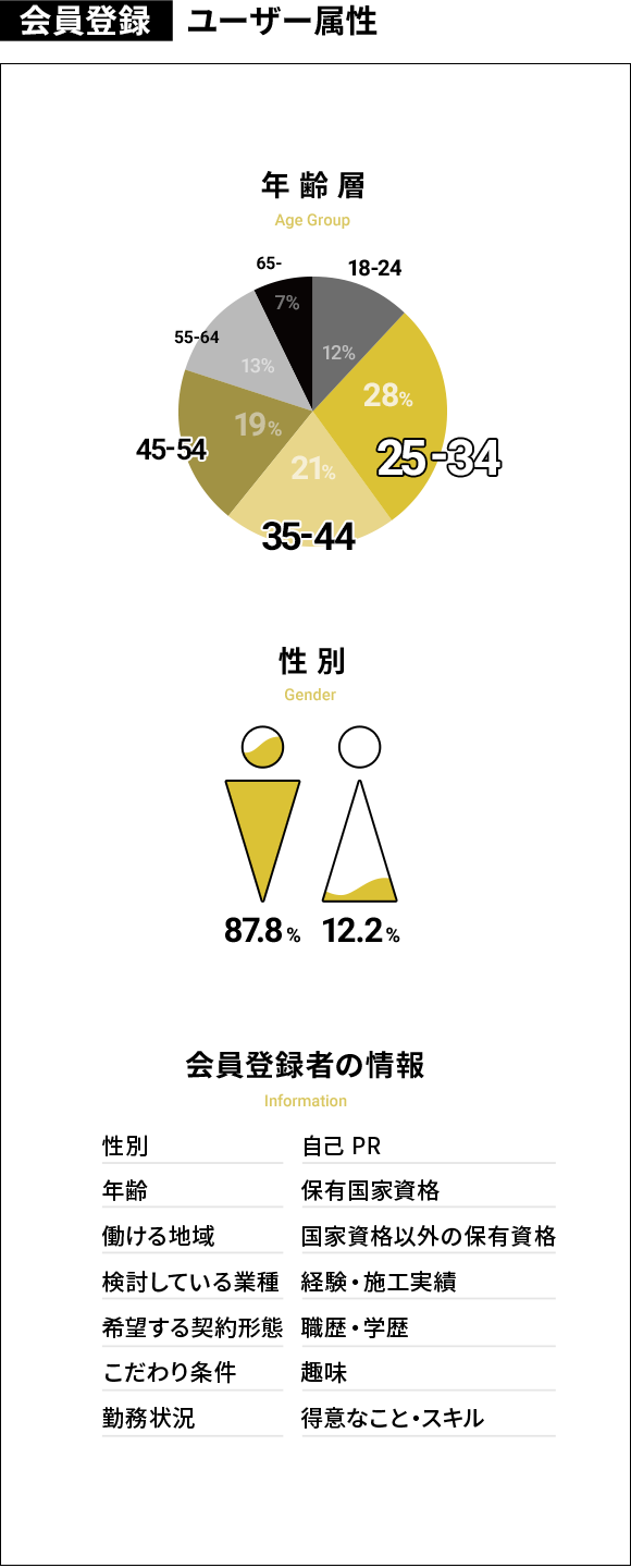 建設業専門だから、意欲の高い未経験者や資格保有者へのアプローチに強い。