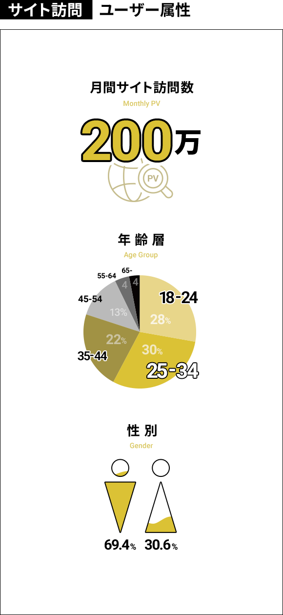 | 男女比(男性:女性) | 50:50 | 60:40 | 47:53 | 88:12 |